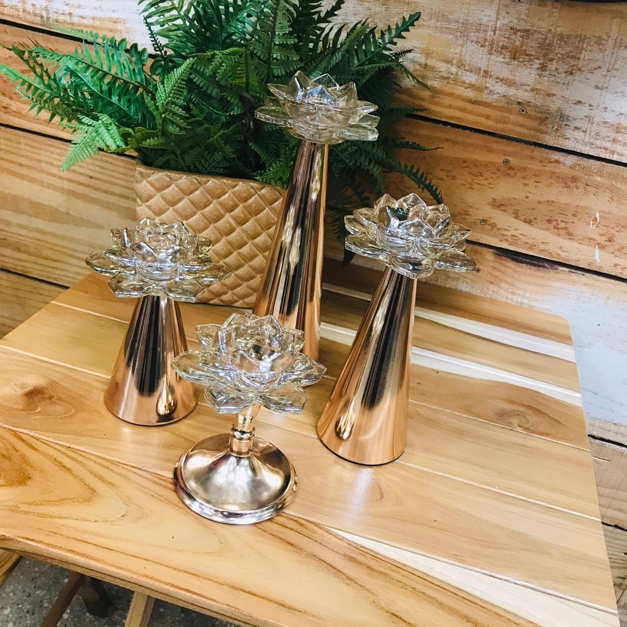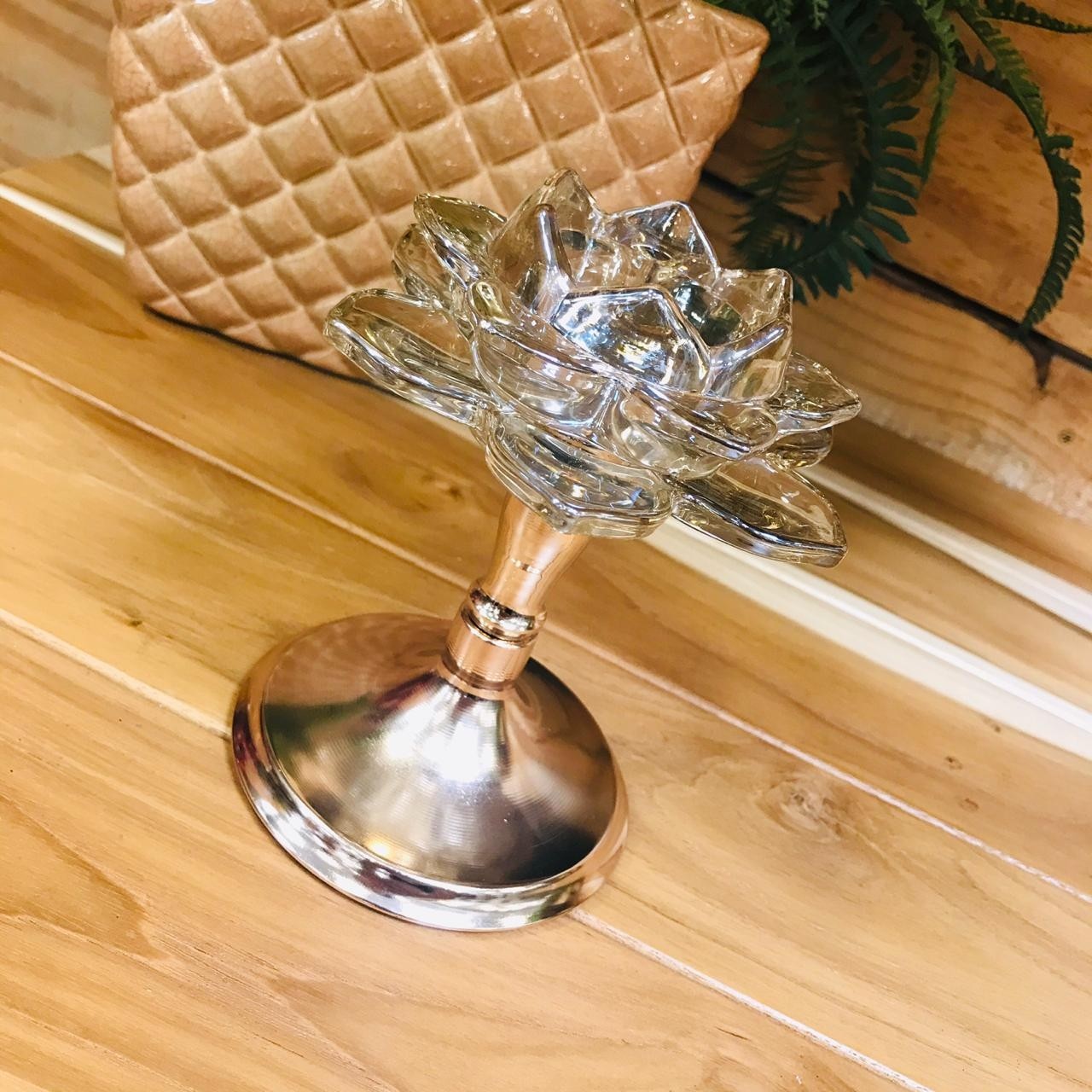Castiçal Flor Dourado Vidro Amba 14cm (EMPORIO)
