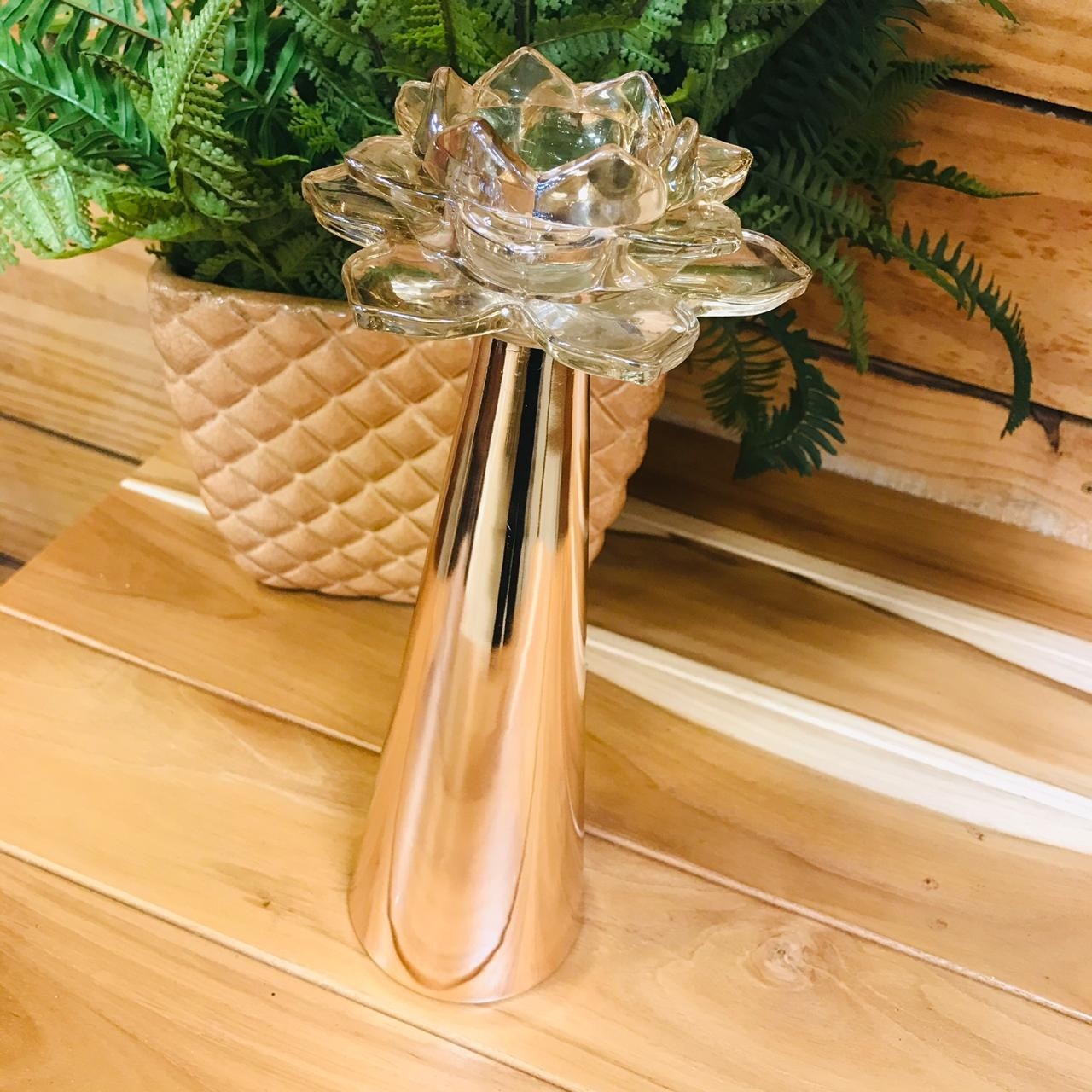 Castiçal Flor Dourado Vidro Ambar 30cm (EMPORIO)