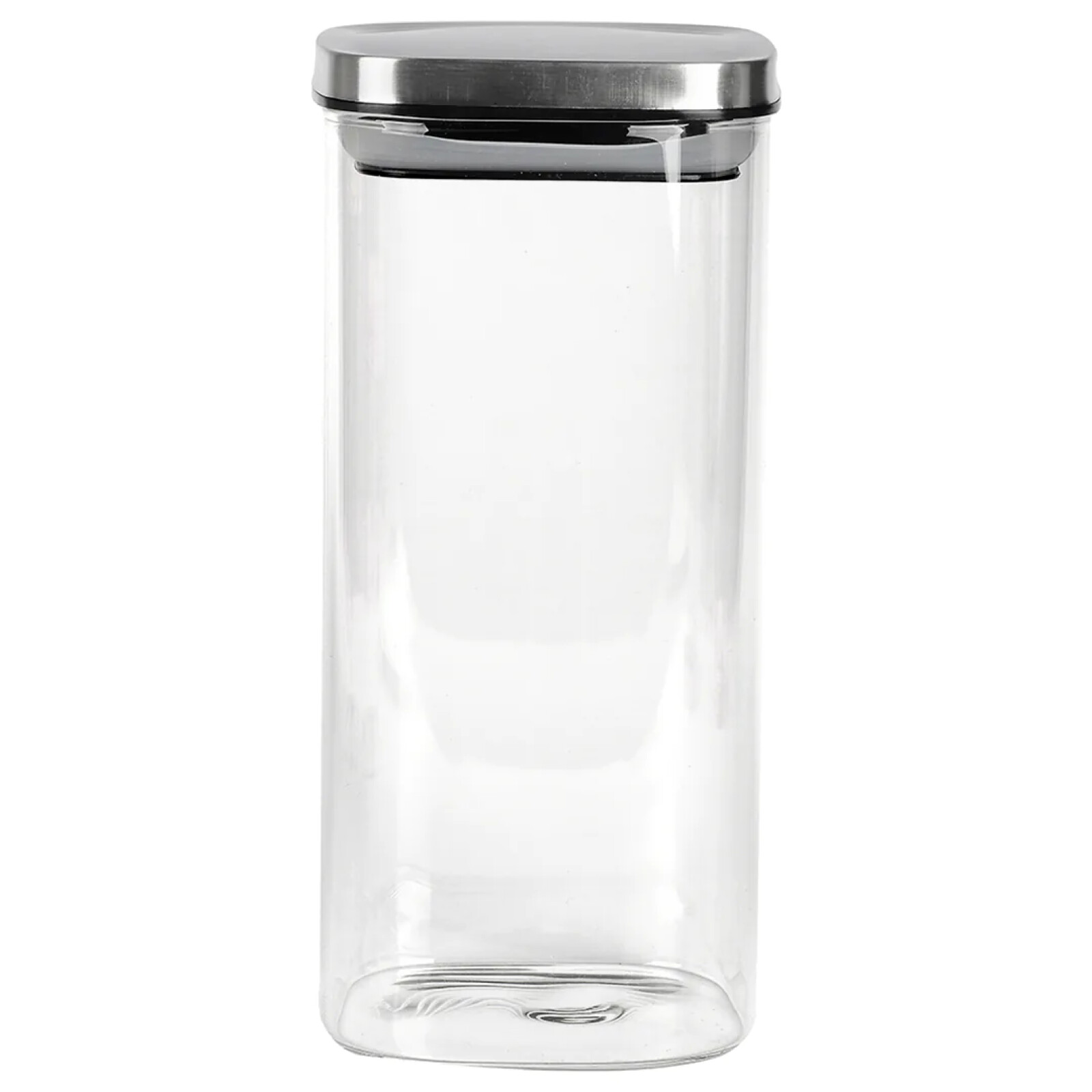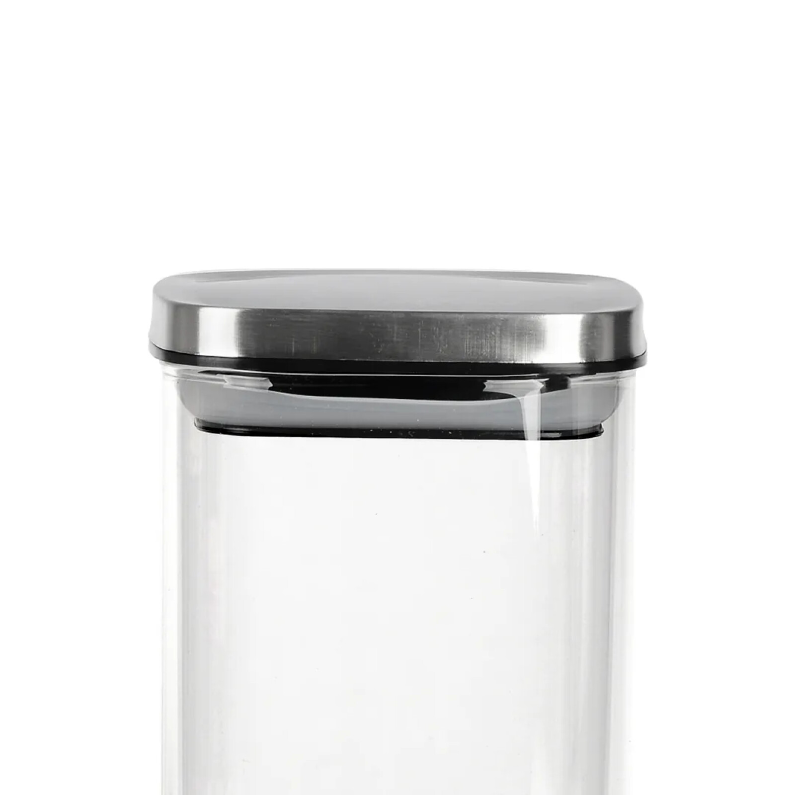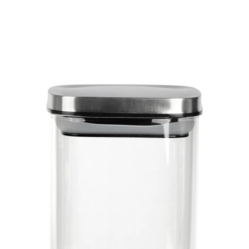 Porta mantimento quadrado em vidro borossilicato com tampa em metal prata 1,4L P10xL10xA22cm