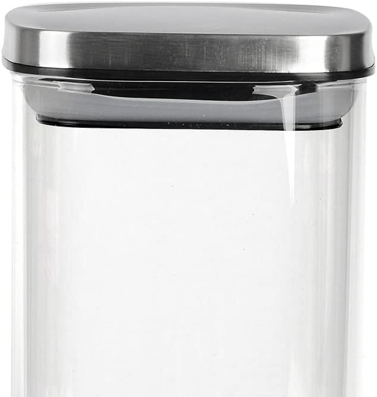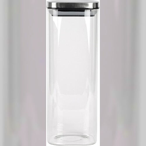 Porta mantimento quadrado em vidro borossilicato com tampa em metal prata 1,9L L10xP10xA28cm